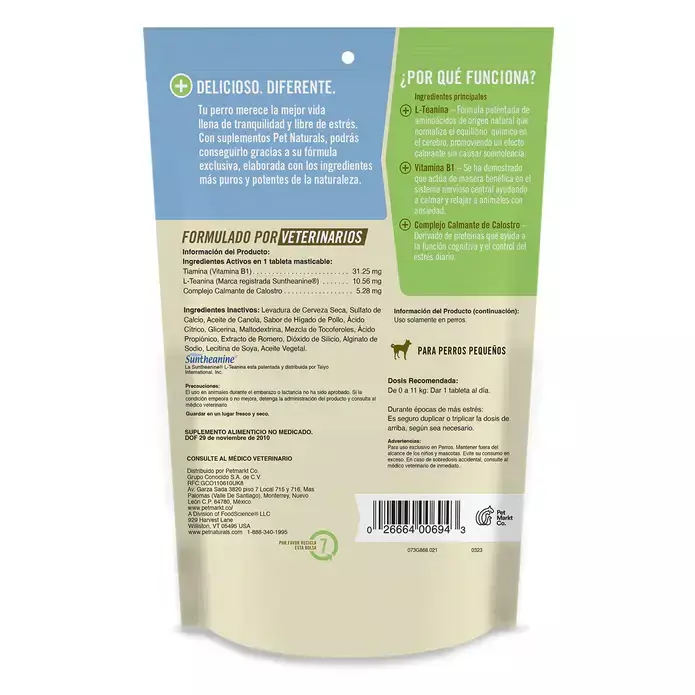 Calmantes naturales para perros de todos los tamaños, con suave sabor a premio. Ideales para apoyar en episodios de ansiedad por separación, nerviosismo, jadeo excesivo, viajes en avión, visitas al veterinario, truenos o fuegos artificiales.